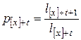 , прошедшее с момента отбора. В актуарной математике эту зависимость обозначают