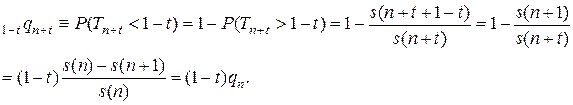 ), то для дробных возрастов (между двумя соседними целыми) функция выживания является линейной. Действительно, всегда верны равенства