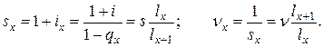 актуарная годовая норма доходности может оказаться заметно выше ее. Так при страховании жизни в странах с развитой экономикой величина процентной ставки обычно составляет 4-5%, тогда как вероятность смерти в течение года, согласно таблице смертности, составляет для мужчин в возрасте 50 лет 2,2%, в возрасте 60 лет – 4,3%. Для актуарной нормы доходности можно ввести также актуарный годовой множитель наращения и актуарный годовой дисконтный множитель: