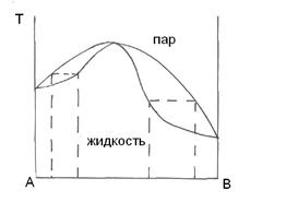 , соответствует двухфазной системе: жидкий раствор и равновесный с ним пар. Верхняя кривая