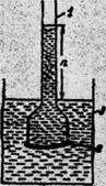 Осмос - это самопроизвольное проникновение растворителя в раствор через полупроницаемую мембрану. Осмотическое давление – это избыточное внешнее давление, которое нужно приложить к раствору, чтобы прекратился поток растворителя через полупроницаемую мембрану, отделяющую его от раствора. Рассмотрим в качестве примера систему, состоящую из двух сосудов (Рис.18), один из которых (1) закрыт внизу мембраной 2, через которую может проходить только растворитель. Сосуд 1 с раствором какого-либо вещества помещен в сосуд 3, в котором находится растворитель. Через полупроницаемую мембрану 2 растворитель из сосуда 3 самопроизвольно поступает в сосуд 1, в результате чего там образуется избыточное давление, численно равное осмотическому, но противоположное ему по знаку.