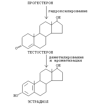 В основном происходит модификация боковых радикалов. Вводятся дополнительные гидроксильные группы. Гормоны становятся более гидрофильными. Образуются молекулы, представляющие собой структуру стерана, у которого в 17-м положении находится кетогруппа. В таком виде продукты катаболизма стероидных половых гормонов выводятся с мочой и называются 17-КЕТОСТЕРОИДЫ. Определение их количества в моче и крови показывает содержание в организме половых гормонов.