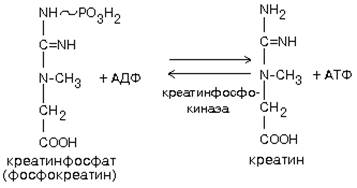 Это самый быстрый способ ресинтеза АТФ. Запасов креатинфосфата хватает для обеспечения мышечной работы в течение 20 секунд.