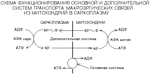 Мембрана митохондрий хорошо проницаема как для креатина, так и для креатин-фосфата, а креатинфосфокиназа есть и в саркоплазме, и в межмембранном пространстве митохондрий.