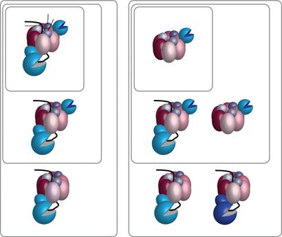 Хвост, который затягивается, может поедаться. Путь этого транскрипта может быть и сразу в субъединицу (а может протягиваться через всю структуру).