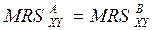 А линия потребительских контрактов соединяет все точки эффективного потребления. Она определяется обоюдными касательными двух кривых безразличия. На линии контрактов предельная норма замещения товара X товаром Y у А равна предельной норме замещения Y товаром X у В.