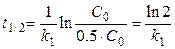 Отсюда для времени полупревращения получим