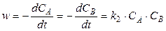где СА и СВ - текущие концентрации веществ А и В в момент времени t.