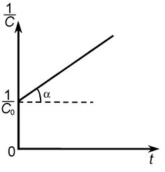 Зависимость обратной концентрации вещества А от времени имеет линейный характер, что следует из уравнения (11). Она представлена на рис. 5. Эта зависимость дает возможность определить k 2 (k 2 = tga).