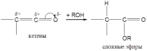 Спирты и фенолы присоединяются к кетенам, давая сложные эфиры: