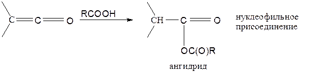 Это – нуклеофильное присоединение. Аналогично присоединяются к кетенам и другие нуклеофилы: