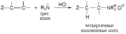 Присоединение третичных аминов также происходит по нуклеофильном механизму: