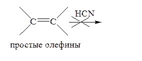 Простые олефины не присоединяют циановодород (синильную кислоту), но был найден катализатор, с которым может осуществиться этот процесс: