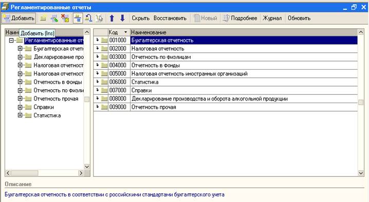 «Справочник отчетов» - вызывает справочник «Регламентированные отчеты»