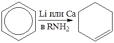 Литий или кальций в аминах восстанавливают бензольное кольцо более глубоко – до цциклогексенов:
