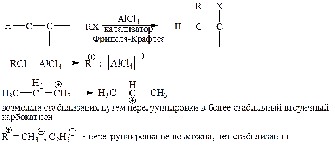 Если R – первичный алкил, то образуются продукты перегруппировки. Если R=CH3, C2H5, то перегруппировка не возможна, и метил- и этилгалогениды вообще не вступают в эту реакцию.