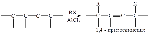 Для сопряженных диенов наблюдается 1,4-присоединение:
