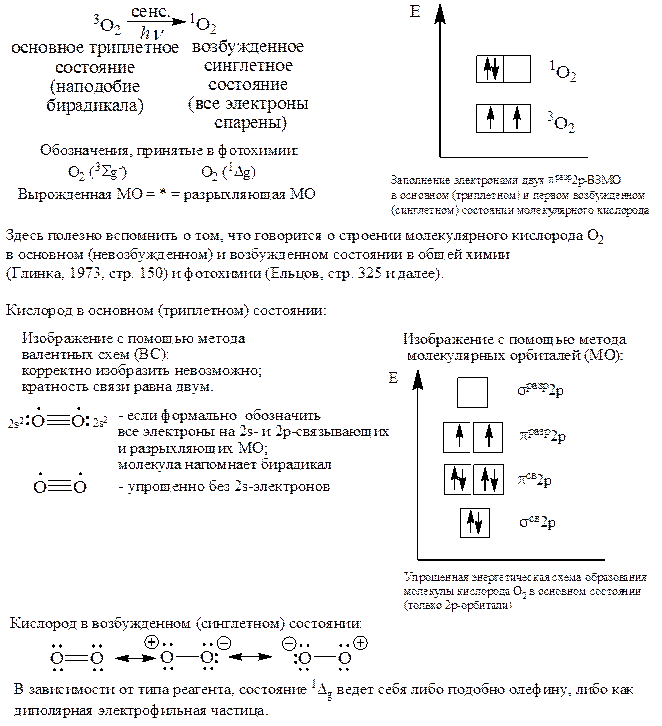 Помимо диенов и ароматических соединений, подверженных прямому фотоокислению, имеется большая группа веществ, присоединяющих кислород в присутствии фотосенсибилизатора, например, эозина. Фотосенсибилизаторы, как и свет, переводят кислород из основного триплетного состояния в возбужденное синглетное: