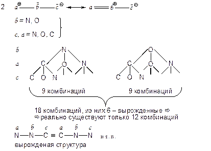 1) Соединения, у которых атом, обладающий секстетом электронов в 1,3-диполярной канонической форме, содержит в этой форме двойную связь, а в другой канонической форме у этого атома находится тройная связь: