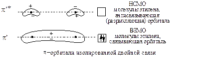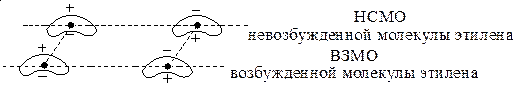 Реакция запрещена как при рассмотрении ВЗМО фотохимически возбужденного диена и НСМО невозбужденного олефина, так и при рассмотрении ВЗМО фотохимически возбужденного олефина и НСМО невозбужденного диена.