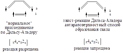 Следовательно, запрещенность или разрешенность того или иного циклоприсоединения зависит от геометрии подхода реагирующих молекул друг к другу.
