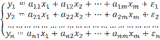Система независимых уравнений — каждая зависимая переменная у рассматривается как функция одного и того же набора фактора х: