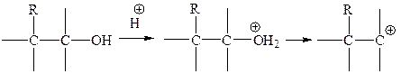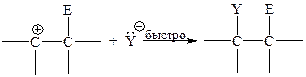 2. Присоединение протона или другой положительно заряженной частицы к одному из атомов ненасыщенной системы (кратной связи):