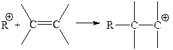 КК может присоединяться к двойной связи, при этом положительный заряд возникает в новом положении: