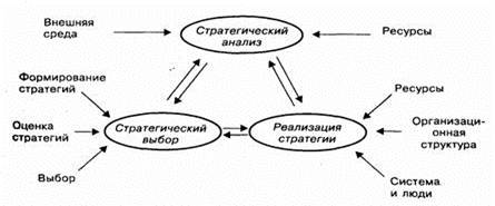 Как и любой процесс управления, стратегическое управление обязательно включает этапы анализа, собственно планирования (выбора) и реализации принятого решения.