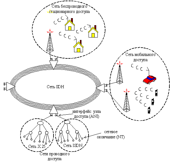 Сопряжение сетей доступа с транспортной сетью осуществляется в узлах доступа. Сети доступа в общем случае разделяются на: