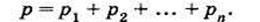 Закон Дальтона: давление смеси идеальных газов равно сумме парциальных давлений компонентов: