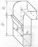 Аспирационный канал (рис. 6) характеризуется длинной А, шириной В, высотой Н1 от места поступления зерна в канал до поворота в осадочное устройство и высотой Н2 от места поступления воздуха в канал до места поступления зерна.