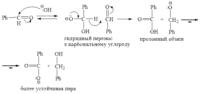 Обычная альдольная конденсация (т. е. несмешанная) невозможна для альдегидов, не имеющих a-С–Н-связей, а именно: для формальдегида HCHO, бензальдегида PhCHO или R3CCHO – и поэтому не способных образовывать карбанионы обсуждаемого типа. При взаимодействии любого из таких альдегидов с водным раствором основания гидроксильный ион просто присоединяется к карбонильной группе. Однако при использовании сильного основания в больших концентрациях такие альдегиды подвергаются окислительно-восстановительному диспропорционированию (реакция Канницаро), когда из двух молекул альдегида одна окисляется до соответствующей кислоты (в виде аниона), а другая восстанавливается до соответствующего спирта: