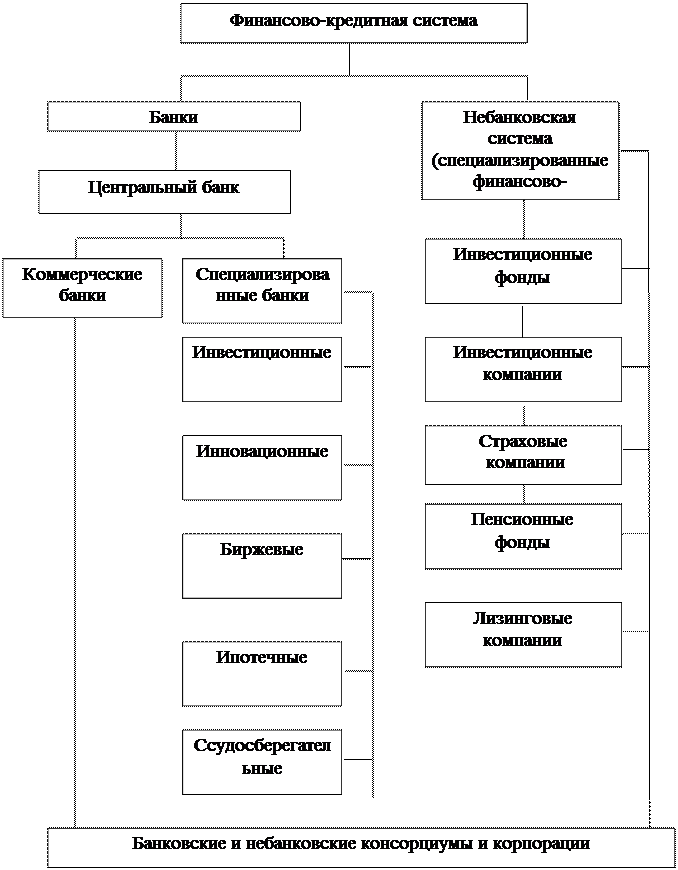 На рис. 2.1 приведена примерная схема финансово-кредитной системы государства с рыночной экономикой.