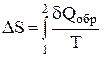 Пусть система из состояния 1 в состояние 2 перейдет двумя путями - обратимым и необратимым. Поскольку энтропия есть функция состояния, то ее изменение не зависит от пути перехода системы из одного состояния в другое, т.е. DSнеобр = DSобр = S2 - S1 (13)