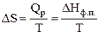 Изменения энтропии в процессе фазового перехода (изотермический процесс).