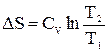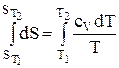 Изменение энтропии при нагревании (охлаждении) вещества от Т1 до Т2 при постоянном объеме.