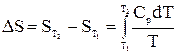 Изменение энтропии при нагревании (охлаждении) вещества от Т 1 до Т 2 при постоянном давлении.