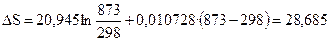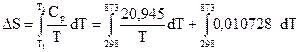 Пример 2.1. Определить изменение энтропии при нагреве 1 моль Al от 25 до 6000С, если для него в этом интервале теплоёмкость зависит от температуры следующим образом: