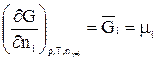 Введение некоторого количества dni молей i–го компонента при постоянном количестве других компонентов и постоянных Т и р будет увеличивать значение энергии Гиббса на величину