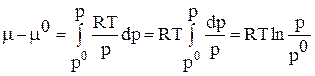 m0 – стандартный химический потенциал, т.е. химический потенциал при стандартном давлении р0 = 1 атм;