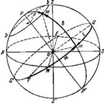 Малый круг небесной сферы (bМb), плоскость которого параллельна плоскости небесного экватора, называется небесной или суточной параллелью светила М.