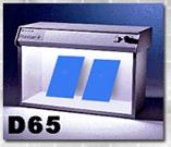 Рис. 9.1 При переходе от дневного света D65 (а) к свету лампы накаливания (источник A) равенство двух образцов голубого цвета нарушается (б)