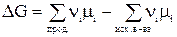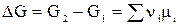 Для одного пробега реакции, т.е. в случае, когда ξ = 1 (когда прореагировали вещества в количествах, равных их стехиометрическим коэффициентам: Dni = ni), в условиях постоянного состава системы (в условиях бесконечно большого количества всех компонентов, когда химический потенциал mi = сonst) изменение энергии Гиббса равно: