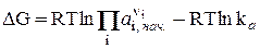 Если рассматривать газофазную реакцию, то для идеальных газов можно записать
