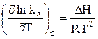Уравнение (27) – это уравнение изобары Вант-Гоффа в дифференциальной форме. Это уравнение показывает, как константа равновесия k a зависит от температуры.