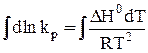 Для получения интегральной формы уравнения изобары Вант-Гоффа нужно соответствующую дифференциальную форму проинтегрировать, для чего в уравнении (29) разделим переменные: