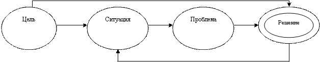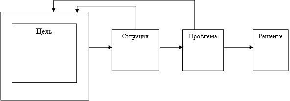 Анализ данной схемы, позволяет сделать следующие выводы. Поисковый тип процесса управления, в отличие от предыдущего типа, исходит из полной ясности цели воздействия, невозможности достаточно хорошо оценить существующую ситуацию относительно данной цели и, следовательно, сформулировать основную проблему.