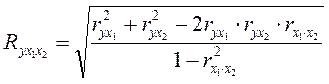 Этот коэффициент находится в пределах от 0 до 1. Он оценивает тесноту связи показателя у с двумя факторами х1, х2 одновременно.