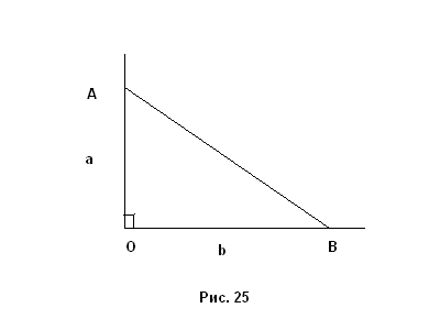 Решение. Строим прямой угол с вершиной О (рис.25). На его сторонах откладываем отрезки ОА= a и ОВ= b. Тогда отрезок АВ является искомым.